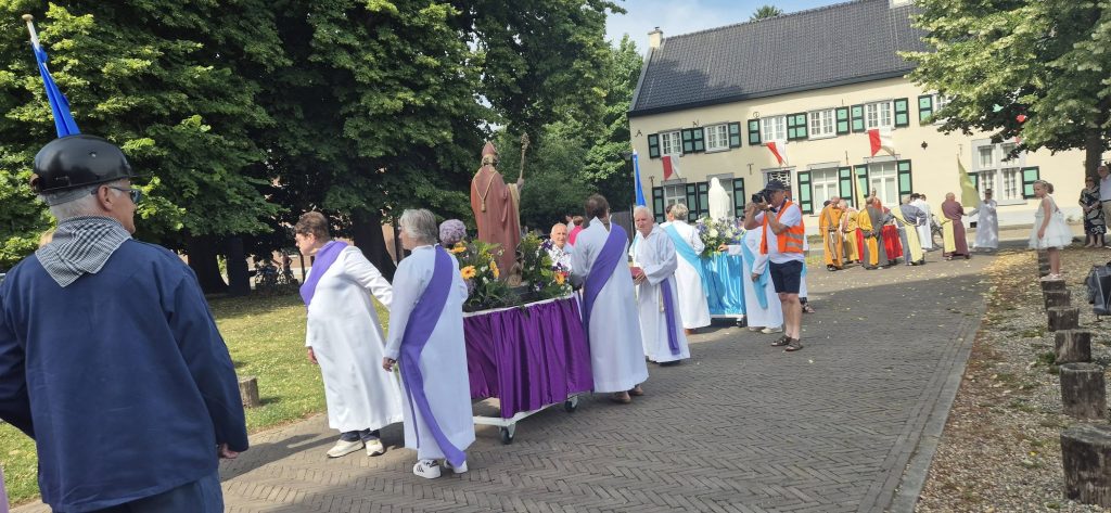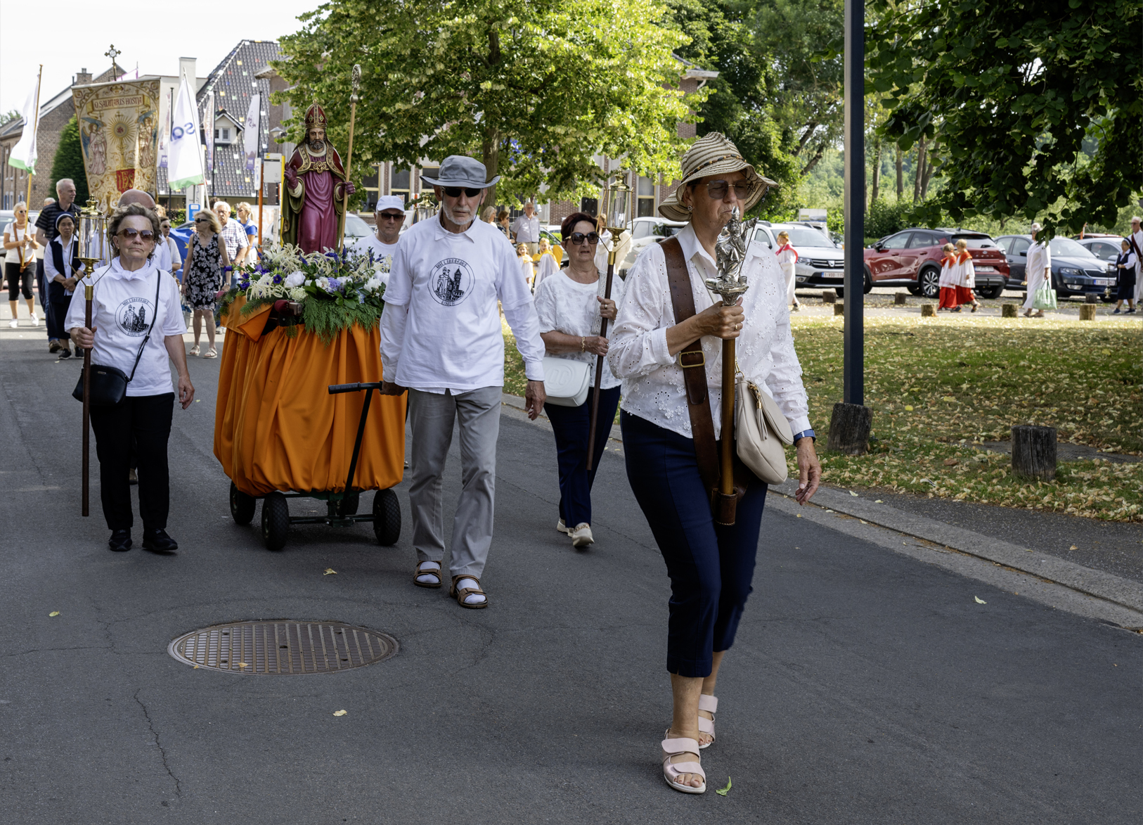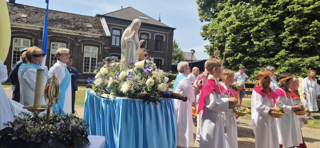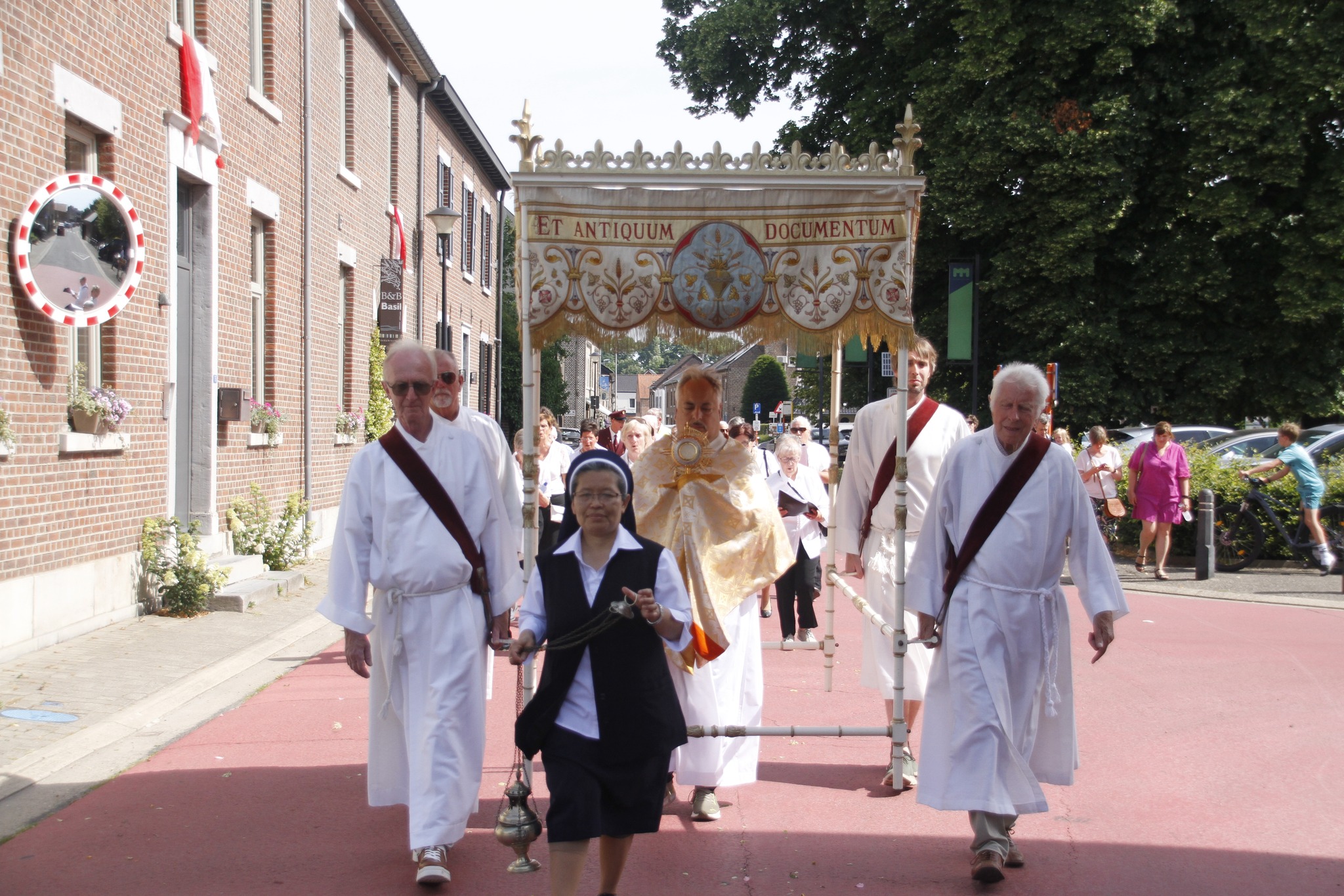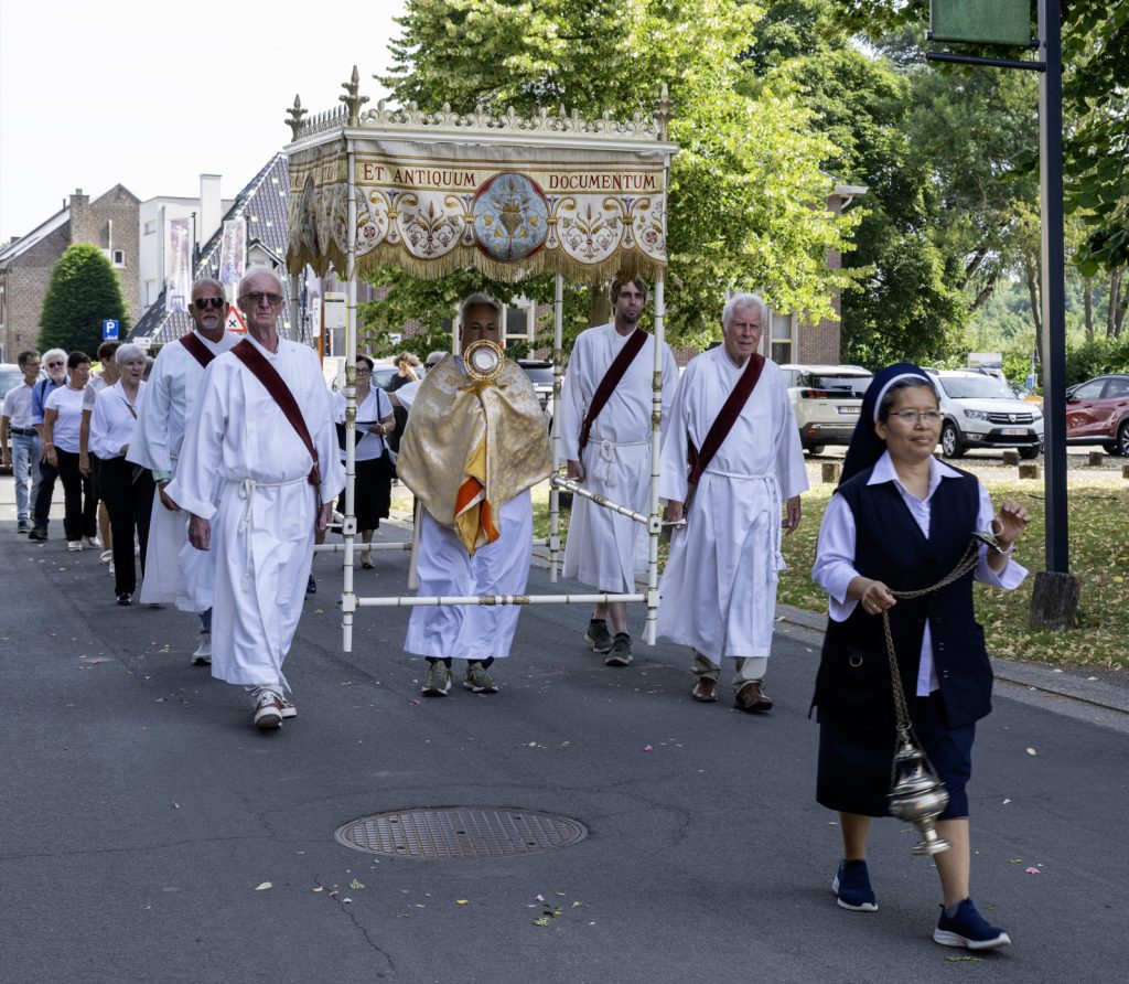 Aansluitend trekt de processie door de Sint- Pietersstraat, Eisdenweg, Zuilstraat en door de Genieskensstraat terug naar de kerk. Na de processie is er een gezellig samenzijn in de tuin van de pastorie bij de zusters in Leut, waar iedereen welkom is.