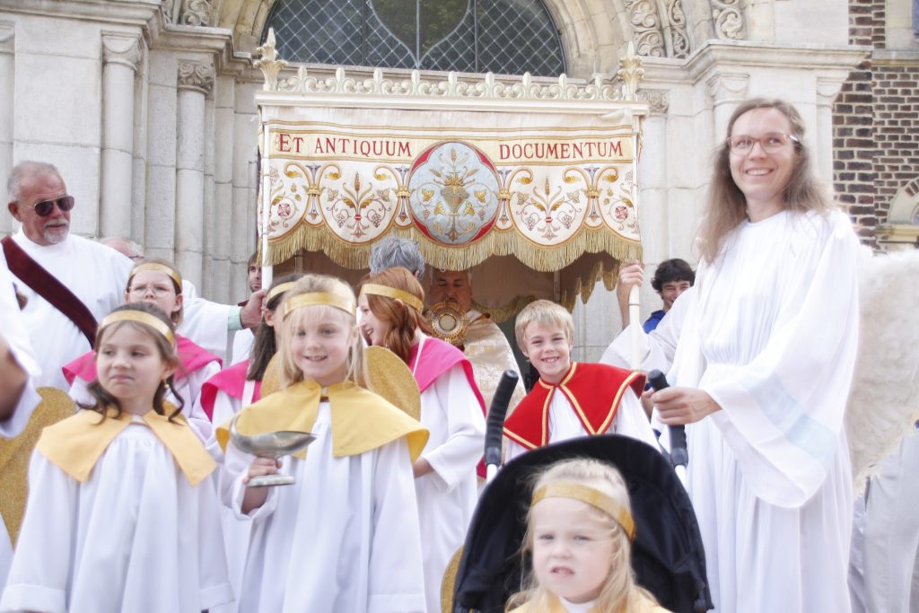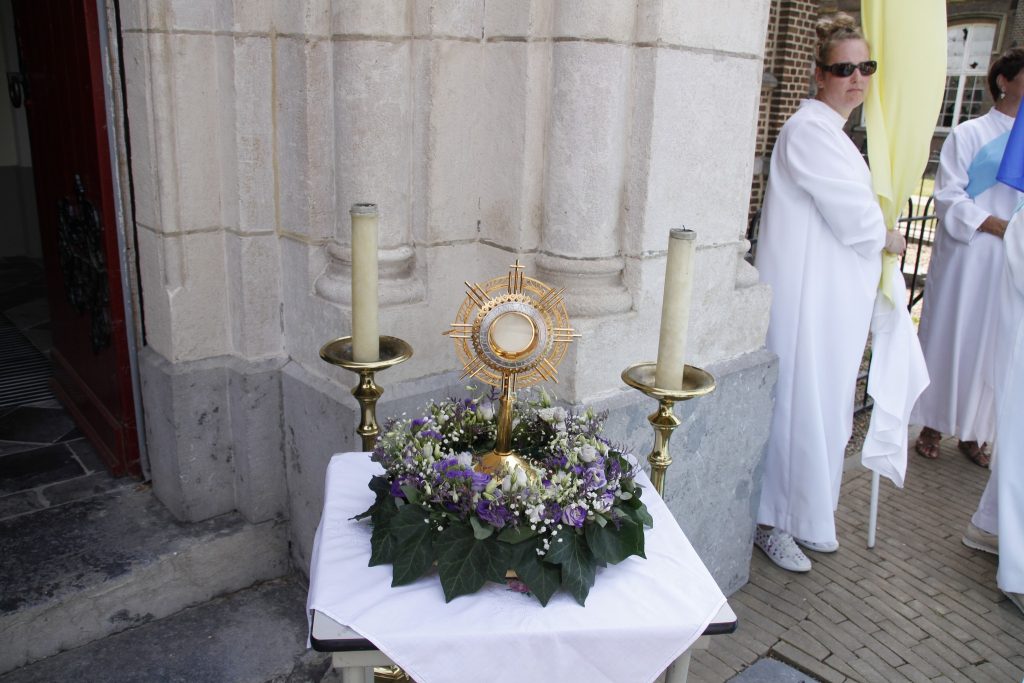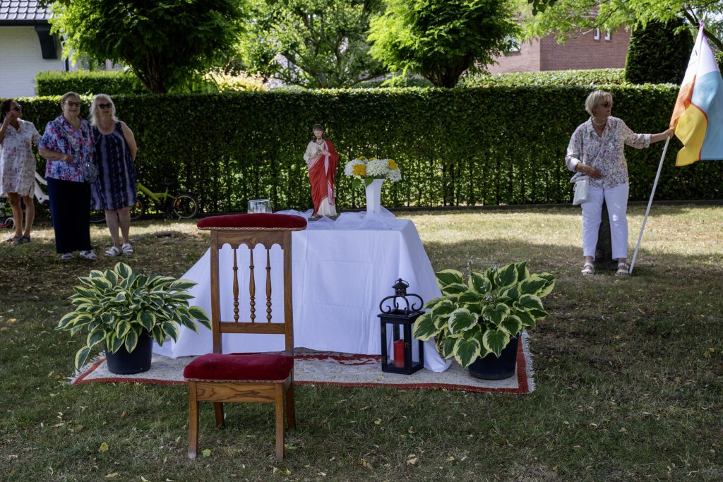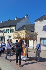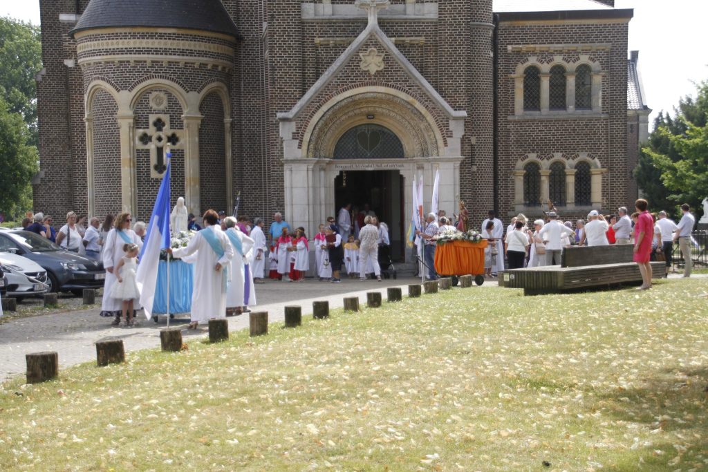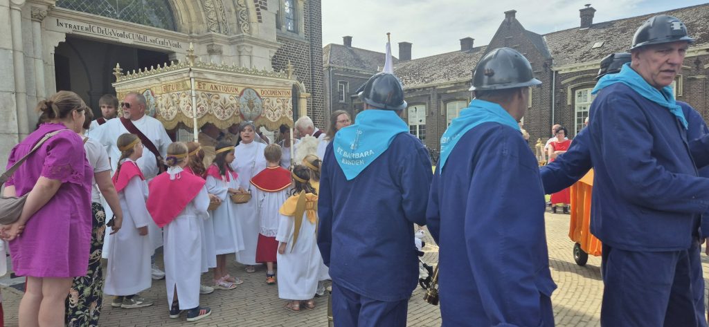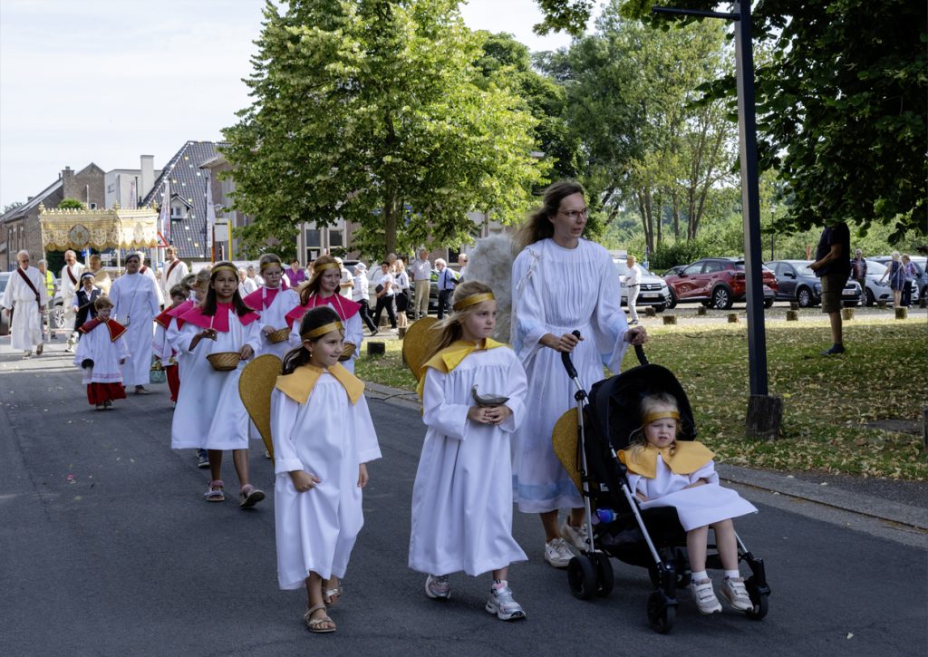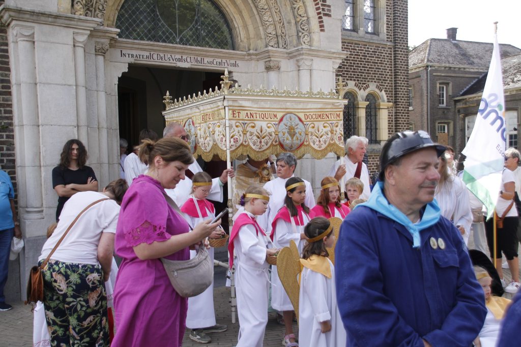Aansluitend trekt de processie door de Sint- Pietersstraat, Eisdenweg, Zuilstraat en door de Genieskensstraat terug naar de kerk. Na de processie is er een gezellig samenzijn in de tuin van de pastorie bij de zusters in Leut, waar iedereen welkom is.