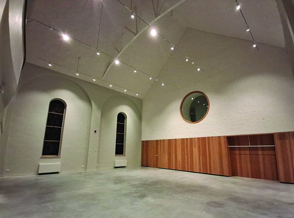 De ruimte is een waardige opvolger van de parochiezaal en kan dienen als feestruimte, netwerkruimte, multifunctionele ruimte, vergaderruimte of hobbyruimte.